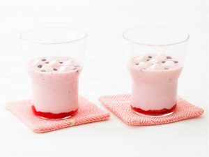 牛乳が苦手なお子さまでもおやつ感覚で飲んでいただけます。 イチゴジャムの色が見た目にもかわいらしい一品です。