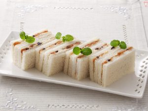 2.サンドイッチ用食パンに①をはさみ、半分に切る。