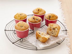 りんごの果肉がたのしめるマフィンです。シナモンの 香りとレーズンがアクセントになっています。
