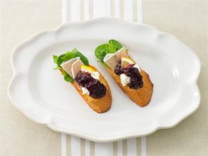 生ハムとクリームチーズとブルーベリージャムがよく合うトーストです。