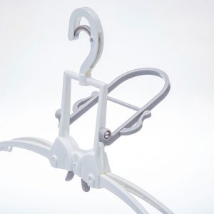 乾きにくいフード部分をフックにかけてクリップで固定できるように改良。服とフードの間に空間ができて早く乾きます。また、アームも広がるので風を通しやすく乾きが早い!