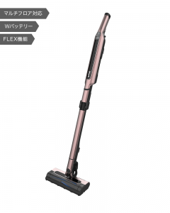 ボタンひとつでパイプが曲がるFLEX機能搭載で、立ったままの姿勢で机の下や家具の下までラクラクお掃除。